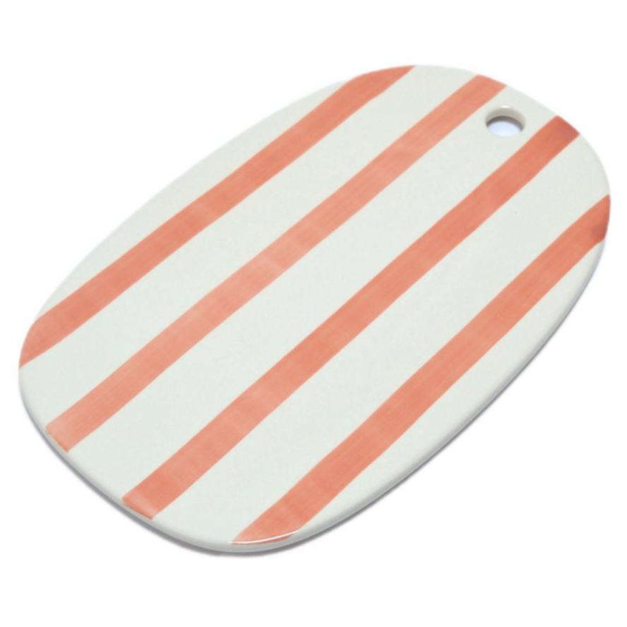 Met een afmeting van 34 x 32 x 1 cm biedt de plank genoeg ruimte voor kazen, hapjes of brood, en is hij tegelijkertijd een echte blikvanger. Gemaakt van hoogwaardig keramiek en voorzien van een speels gestreept design, voegt deze plank een mediterrane touch toe aan je interieur.